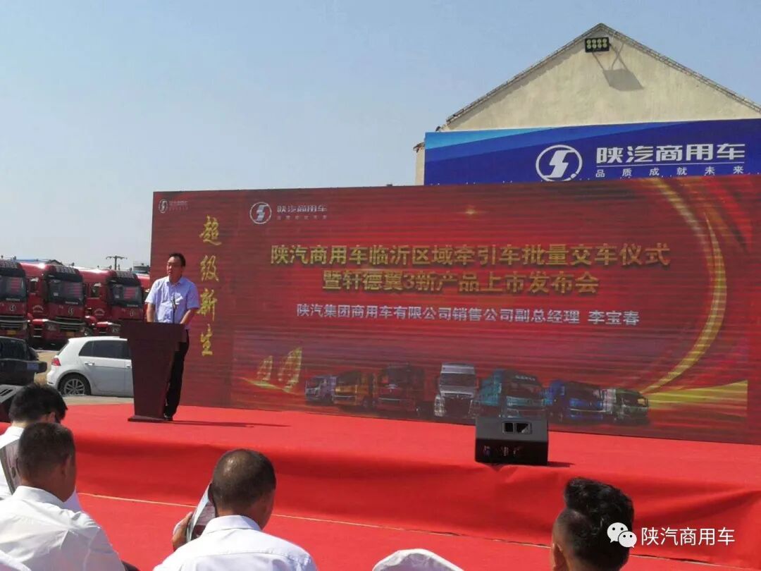 乘风万里,丰泽四方。2020年9月20日,陕汽商用车联合广西玉柴机器股份有限公司举办,临沂市海升源汽贸有限公司承办的陕汽商用车牵引车批量交车仪式暨轩德·翼3新产品临沂上市发布会在中国物流之都-山东临沂成功举办。现场交车65台,斩获订单100台,获得良好的成绩!