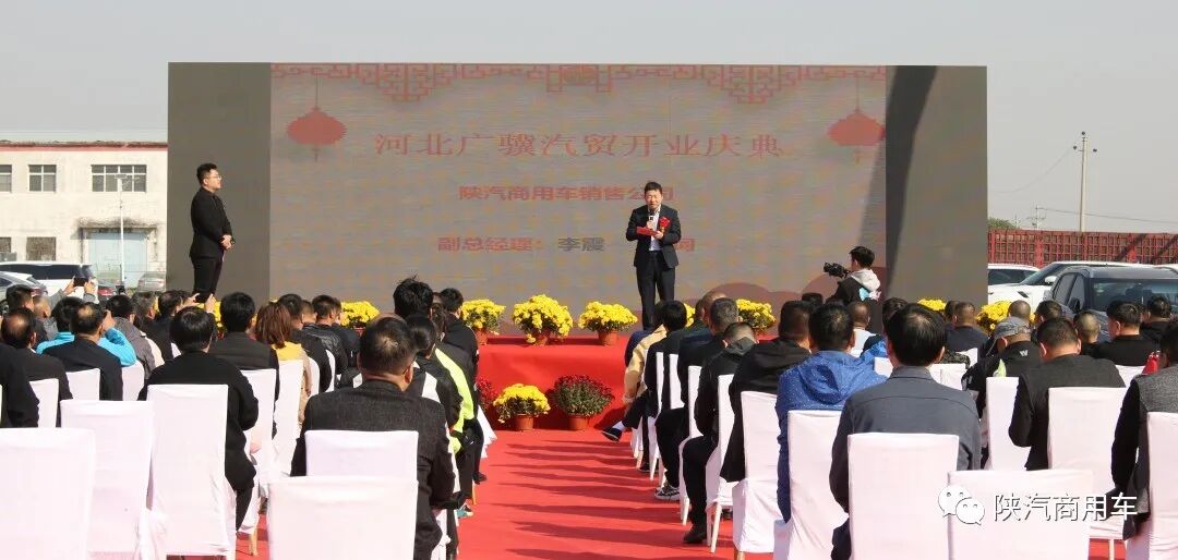 2020年10月24日,以“陕亮燕赵”为主题的河北广骥汽贸开业典礼暨陕汽商用车河北区域轩德翼系列牵引车产品推介会在河北·邯郸成安圆满举行。陕汽商用车销售公司副总经理李震、河北广骥汽贸董事长郝鹏、陕汽商用车河北办事处主任徐光杰及广西玉柴发动机河北办事处主任王世伟、各大物流运输公司以及新老客户等200余人出席本次活动。